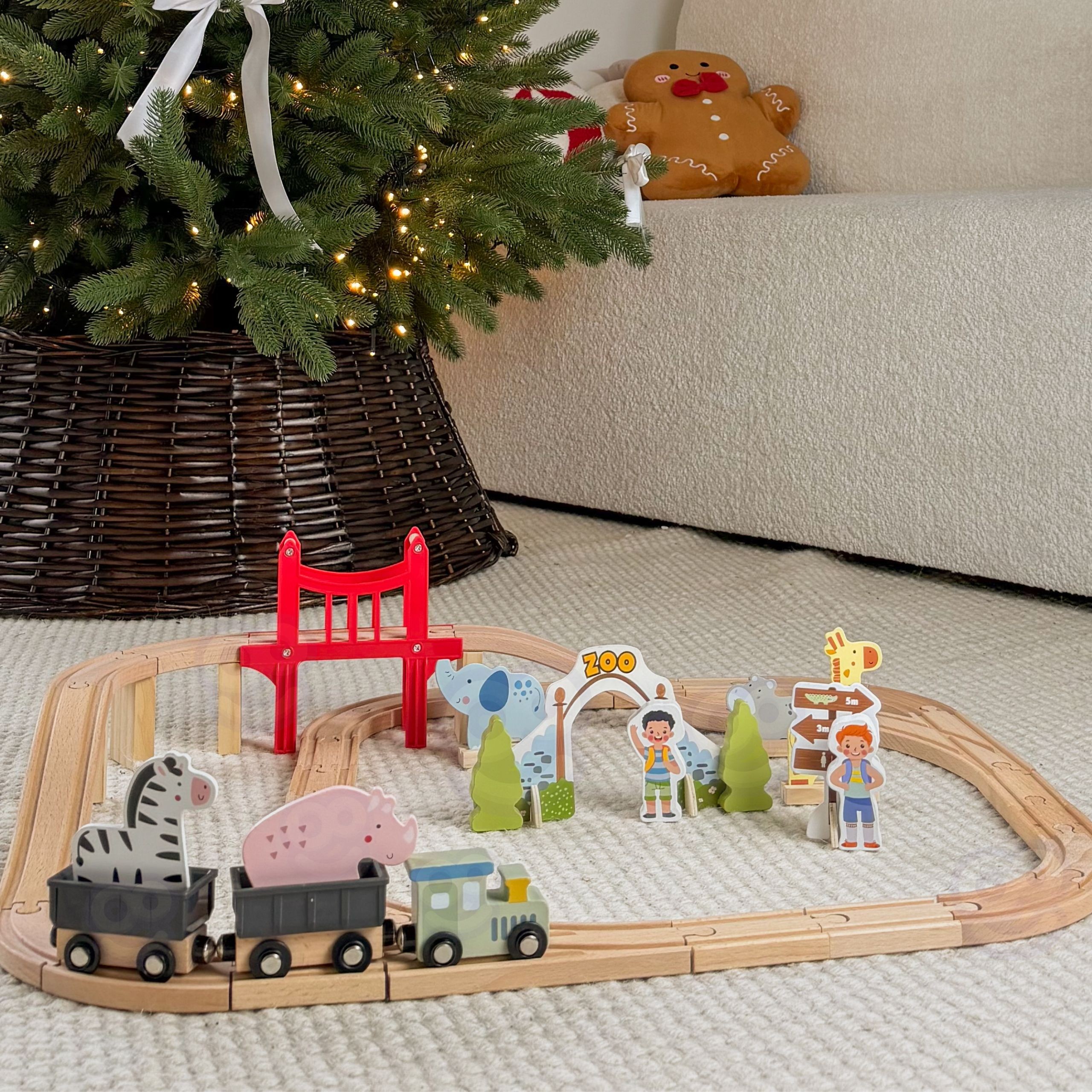 Woopie Let's Go Green WOOPIE GREEN Drevená vlaková súprava ZOO XL Magnetická vlaková dráha 60 ks FSC