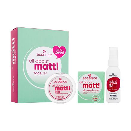 Essence All About Matt! Face Set fixační kompaktní pudr all about matt! fixing compact powder 8 g + fixační sprej na make-up instant matt make-up setting spray 50 ml + matující…